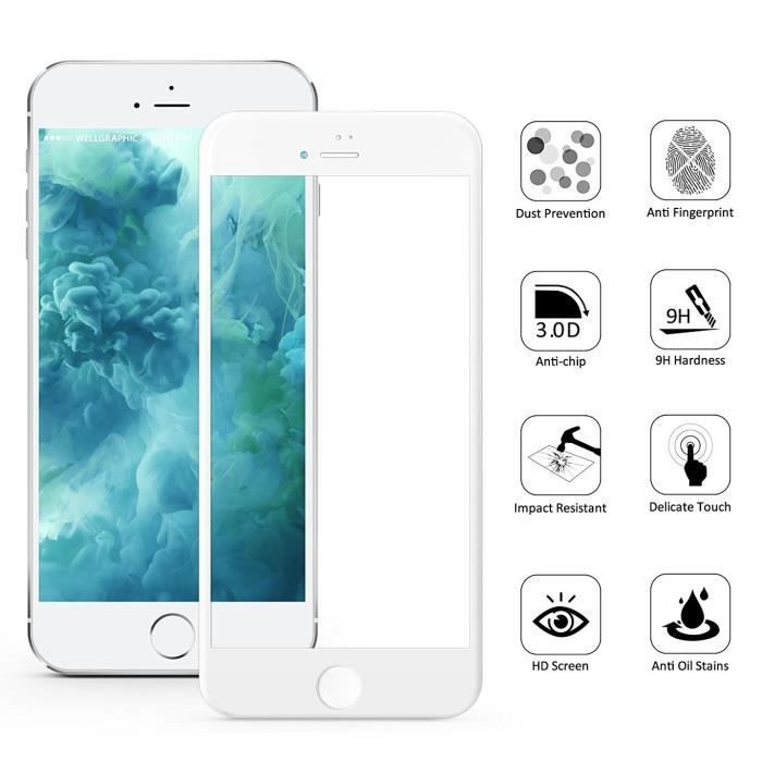 Tempered Glass - Phonillico® - iPhone 8 PLUS - 3D Protection Film - Ultra Resistant - White