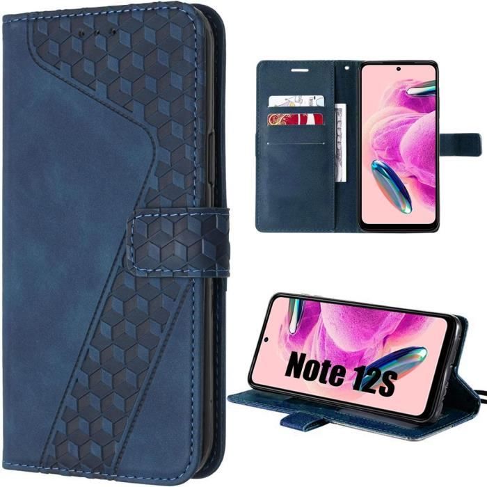 Coque pour Xiaomi Redmi Note 12S, Bleu Marine, Housse Embossée en Cuir PU avec Porte-cartes et Support (pas pour Note 12)