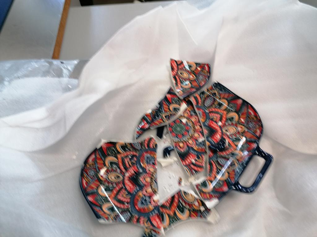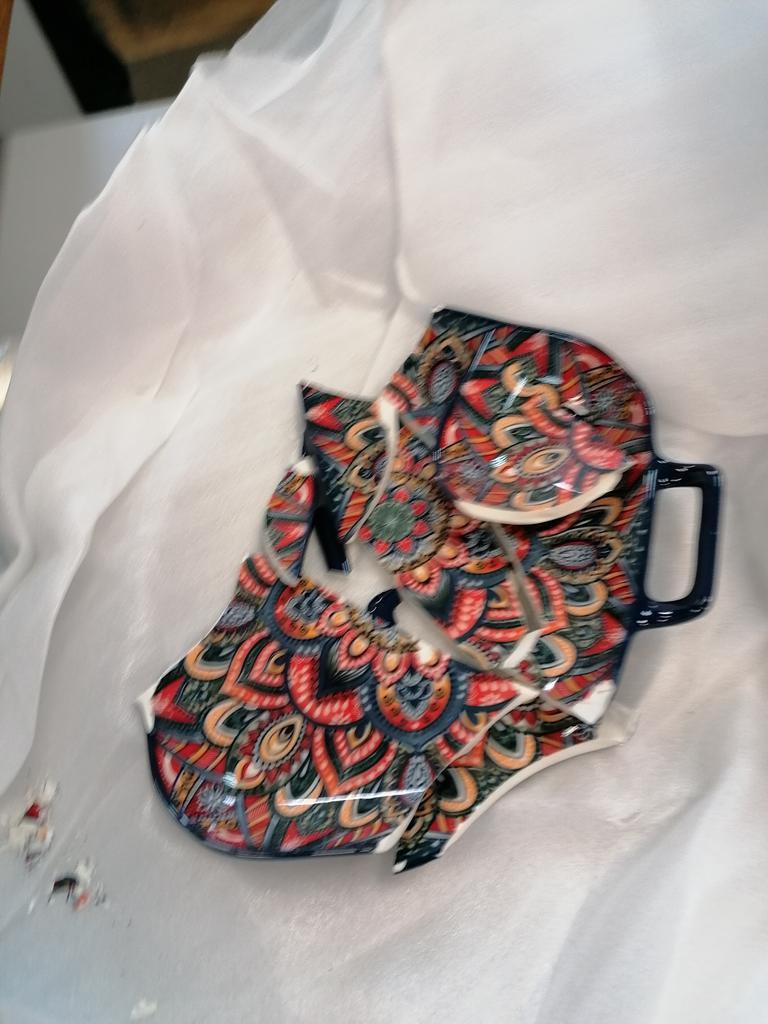 The product arrived broken into small pieces. Poor packaging of the product.