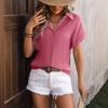 Summer Women's Casual Solid-color Wrinkled Fabric Button Short-sleeved Shirt