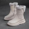 Shanghai Jiechu's New Winter Mid-Tube Velvet-Lined Snow Boots - Solid Color, Thick-Soled, Casual Women's Footwear.