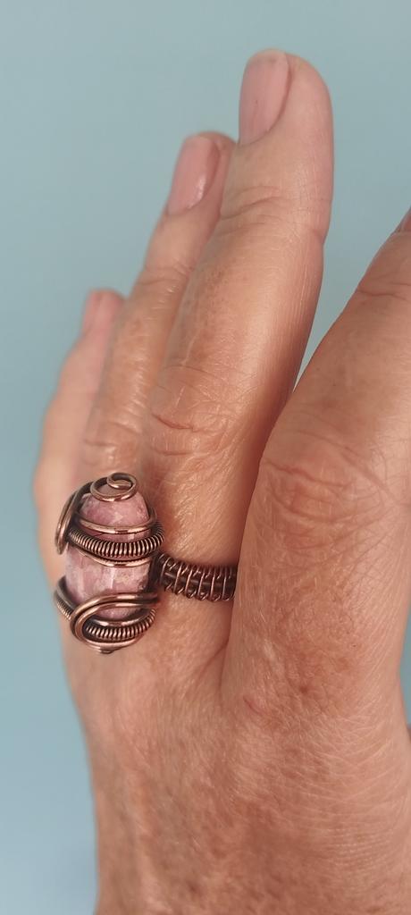 Rhodochrosite Handmade Copper Wire Wrap Jewelry Ring Size 9 N1K24
