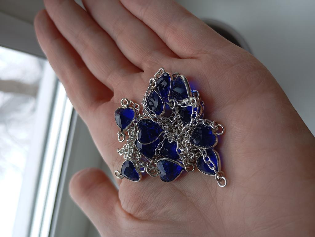 Beautiful decoration with small hearts. The color of the stones is bright. Happy with the purchase.