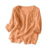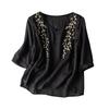 Women's Solid Color Cotton And Linen Short-sleeved Embroidered Retro Breathable T-shirt Round Neck Top