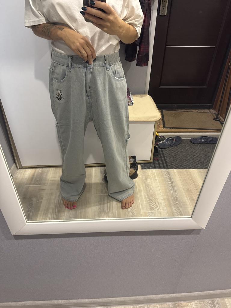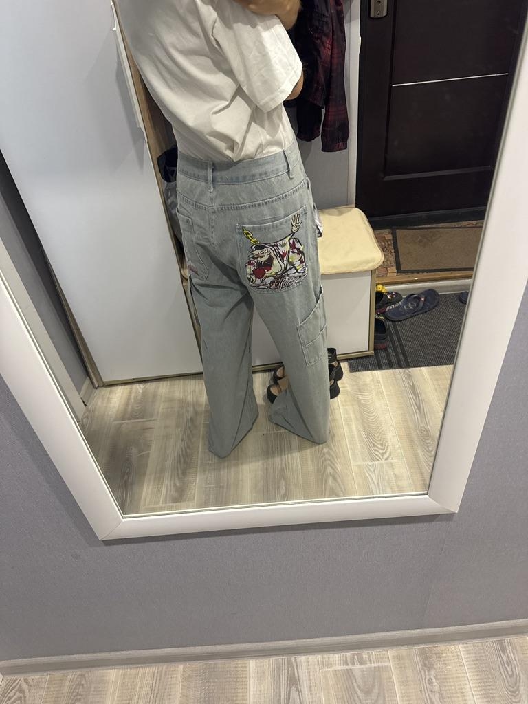 Fashion Casual Loose Big Pocket Jeans Harajuku High Waist Straight Leg Wide Leg Trousers
