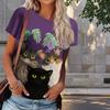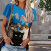 Women Summer T Shirt Kitten Print Retro Fashion Short Sleeve Tees Casual Printed Tops