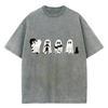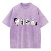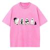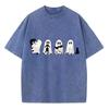 Cartoon Cat With Ghost Print Women T-Shirt Oversized Crew Neck Wash Loose Short Sleeve Unisex Minimalist Top Cute Sweetheart Y2k
