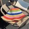 Summer Hats For Women Sun Hat Rainbow Color Straw Bucket Hat Sunscreen Outdoor Travel Beach Casual Bohemia Style 2025 New Sunhat
