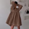 Women's Loose Summer Dress Elegant Commuting Long Sleeve V Neck Lace Spliced Button Beach Dress