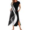 Ladies' Fashionable Summer Casual Pleated Sleeves, Loose Color Block Patchwork Printed Short-sleeved Round Tie Pocket Beach Dress