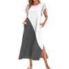 Ladies' fashionable summer casual pleated sleeves, loose color block patchwork printed short-sleeved round tie pocket beach dress