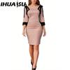IHUASU Women's Autumn-winter Dress with Ties On The Shoulders and Three-quarter Sleeves with A Slit At The Back