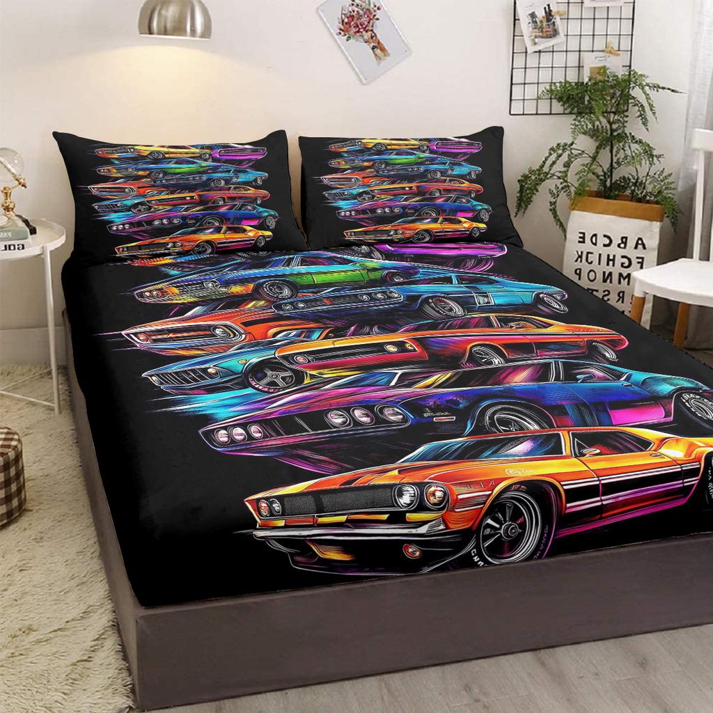 Stacked Car 3-Piece Bedding Set With Two Pillowcases, Suitable For Living Room And Bedroom (Colorful, Design, Unique Gift)