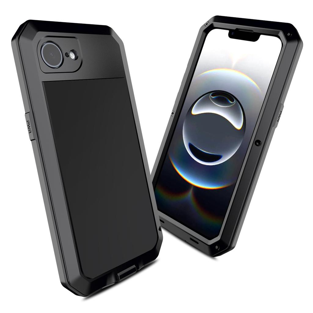 For iPhone 16e Case Silicone+Metal Anti-Drop Phone Cover with Tempered Glass Film