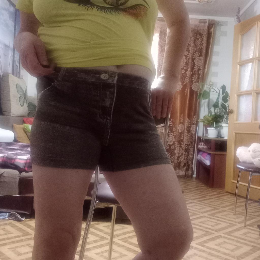I didn't try on the shorts, but they stretch a lot. They will be suitable for working in the garden beds in the summer.