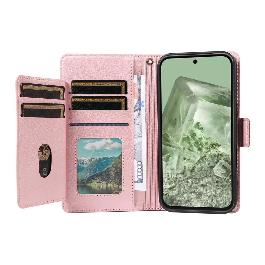 For Google Pixel 8a Case with Multi-Card Holder and Strap PU Leather Phone Cover Stand