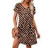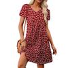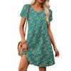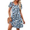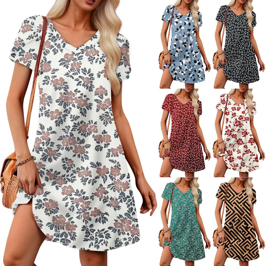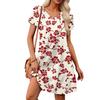 Women's Petal Short Sleeve V Neck Loose Flower Print Swing Sundress With Pockets