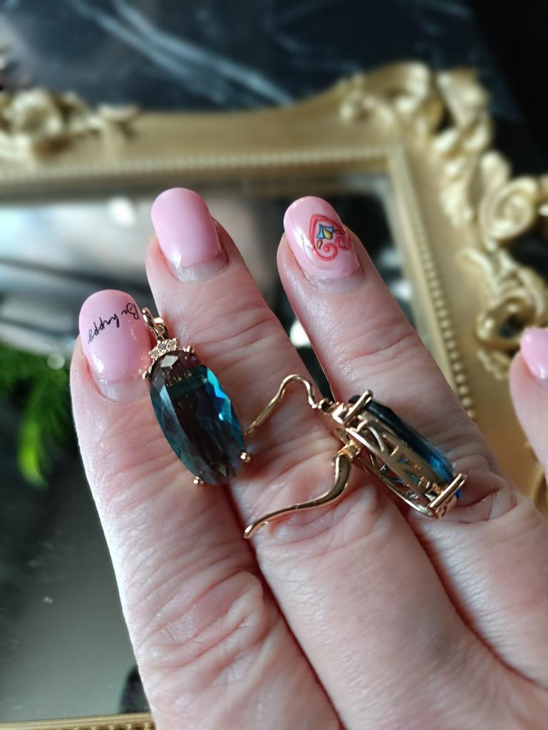 Large Oval Cut Blue Zircon Drop Earrings for Women Exaggerated Geometric Earrings Vintage Luxury Party Jewelry Unique Accessories
