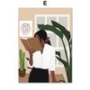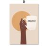 Elegant Abstract African Girl Wall Art with Sun Coffee HD Canvas Print Poster for Living Room Bedroom Decor