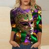 Round Neck 3D Mask Printed Top Fashionable Casual Long Sleeved Women's T-shirts