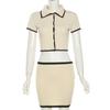 Women 2 Piece Set Polo Neck Button Shorts Crop Tops+Mini Skirts Matching Stretch Elegant Streetwear Outfits Short Skirt Set