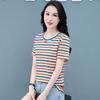Elevate your summer wardrobe with this delightful women's T-shirt, crafted from a breathable cotton blend for ultimate comfort. Featuring a lively striped pattern, this casual and colorful top is designed with a flattering round neckline and short sleeves, perfect for warm-weather wear. The loose fit and slimming design offer age-reducing appeal, while the playful print decoration adds a touch of fun to any outfit. Ideal for relaxing days out or effortless everyday style, this T-shirt blends versatility with a youthful charm.