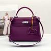 Silver Buckle Bag With Wide Shoulder Straps TOGO Head Layer Genuine Leather Silver Buckle Mesh Red Sea Anemone Purple Women's Bag