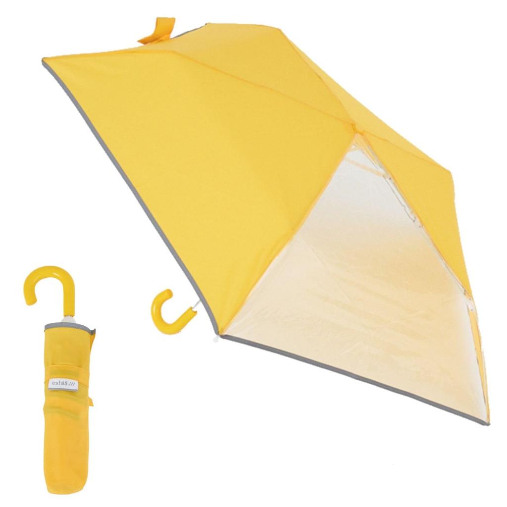 Estaa Kids Folding Umbrella with Transparent Window Umbrella Windproof for Children Boys Girls Plain Reflective Tape Reflective Finger Resistant Rib