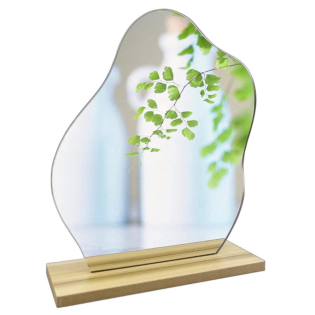 Wave Mirror with Wood Korean Unbreakable Room Makeup Present Stand, Acrylic, Style, Mirror, Mirror, Irregular, Stylish, Interior, Mirror,