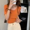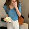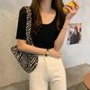 French Waist Top Summer Women's New U Neck Thin Ice Silk Knit Short Sleeve T-shirt Square Neck Short Shirt