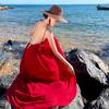 Elegant Red Fairy Beach Dress: Long, Backless, Sanya Travel Skirt