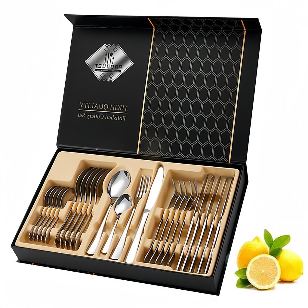 Material: 304 stainless steel Product size/weight: (approx.) Steak knife: 23cm, dinner fork: 21cm, dinner spoon: 20cm, dessert spoon: 14cm 6x table knives, 6x table forks, 6x table spoons, 6x table teaspoons, can meet the needs of most families of 6 people. The restaurant has a unique style, perfect for kitchens, hotels and restaurants. Specifications: Dishwasher safe. Made of high-quality stainless steel, it has a luxurious feel, and just by placing it on the table, it will brighten up your dining table and make your usual dishes taste 30% more delicious. Stylish cutlery set!