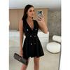 A New Summer Solid-color Double-breasted V-neck Sleeveless Suit Dress with A Cinched Waist