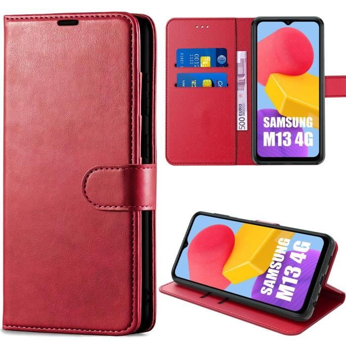 Case for Samsung Galaxy M13 Flip Case Leather Effect Anti-Scratch Shockproof - Red