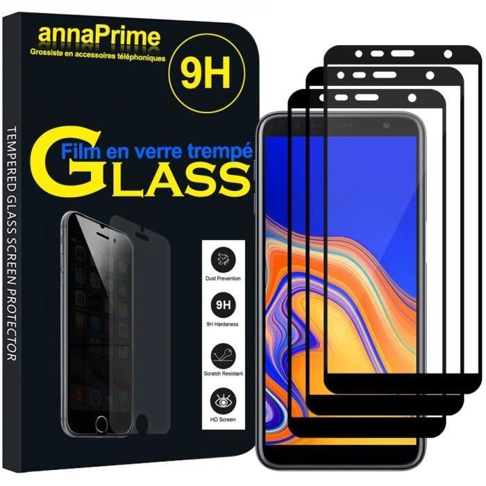 Film de protection d'écran - VCOMP - Samsung Galaxy J6+/ J6 Plus (2018) - Verre trempé - Lot de 3 - Noir