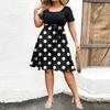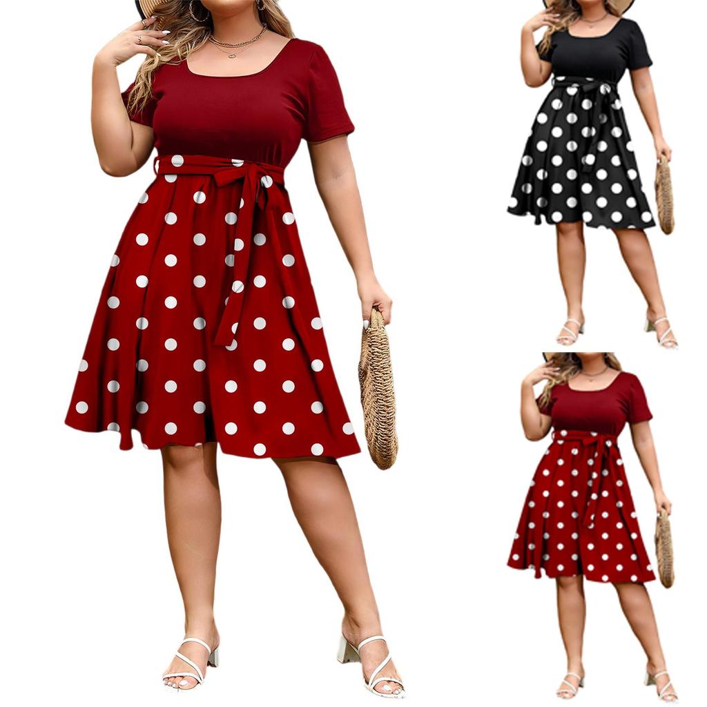 Women's Fashionable And Trendy Round Neck Short Sleeved Waist Print Dress In Plus Size