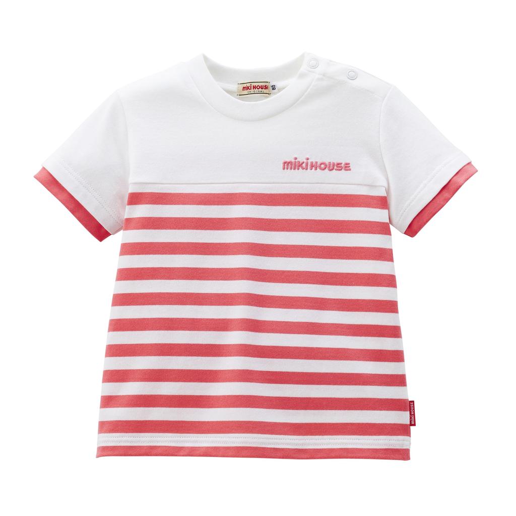 Short Made In Going To Coral Pink [MIKI HOUSE] T-shirt, Sleeve, Border, Logo, Simple, Japan, Boys, Girls, Babies, Kids, Children's Clothing,