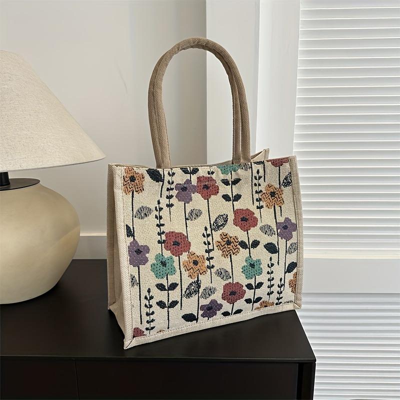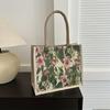 Simple and Fashionable Linen Flower Printing Handbag Women Fashion Commuter Shoulder Bags Tote Bag