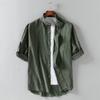 Men's Summer Stand-up Collar Linen Five-minute Sleeve Shirt Large Size Solid Color Loose Casual Tops