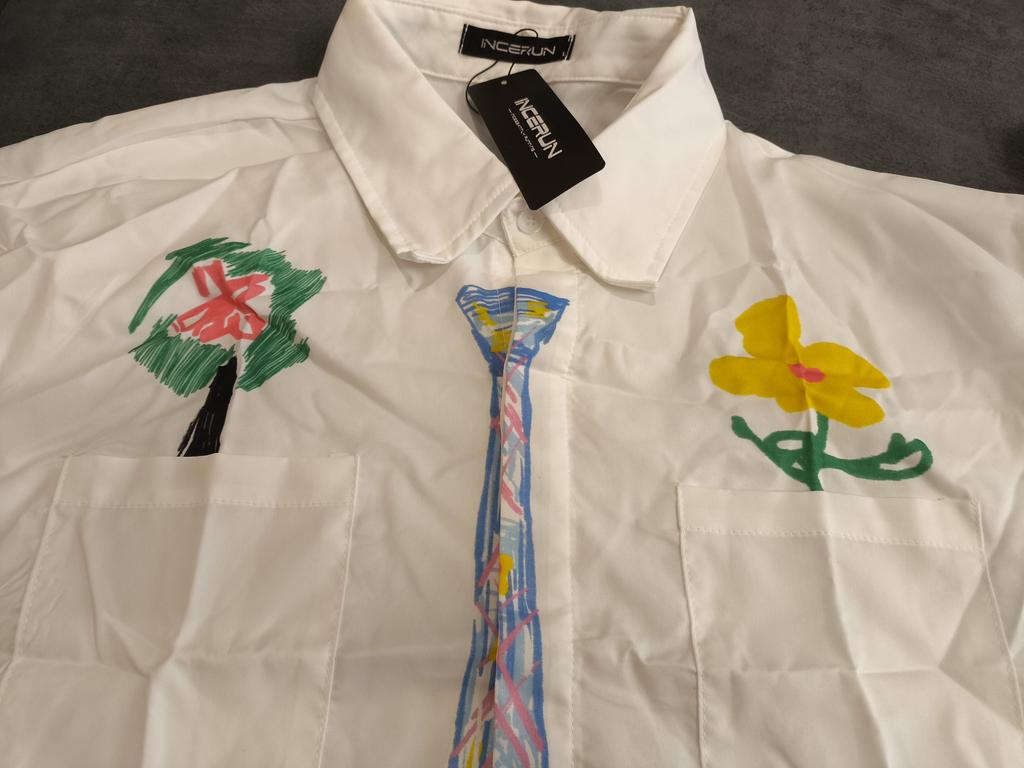 INCERUN Oversized Men Lapel Neck Long Sleeve Floral Print Chest Pockets Casual Shirts