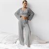 Stylish European American Knit White Round Neck Long Sleeve Pajama Set Soft Skin Friendly Home Service Suit Comfortable Sleepwear
