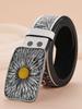 Silver Plated Sunflower Ladies Belt Spice Girl Embossed Vintage Plate Buckle Belt Jeans Decorative Belt