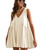 Women Sleeveless V Neck Solid Mini Flowy Tank Dress with Pockets Casual Loose Pleated A Line Beach Holiday Short Dresses