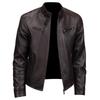 Revamp your wardrobe with this stylish faux leather motorcycle jacket. Designed for men, it features a sophisticated stand collar that adds a sleek touch to any ensemble. Combining elements of British and Korean style, this jacket offers a unique and trendy appearance perfect for any occasion. Whether you're heading out for a casual day or a night on the town, this jacket is sure to make a fashionable statement.