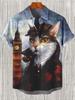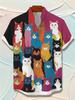 Summer Men's Retro Cartoon Anime Cat Theme Print Short Sleeve Shirts Short Sleeve Tops Fashion Casual Vacation Streetwear Men's Shirts