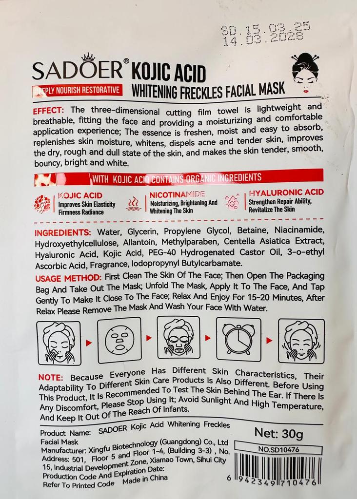Kojic Acid Whitening and Freckle Removal Mask 30g SADOER Hydrating and Moisturizing Brightening Mask
