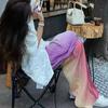 Ice Silk Pleated Tie Dye Summer Thin Gradient Color Wide Leg Pants Sun Protection Cool Beach Walking Pants