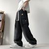 Summer Men's Straight Jeans Pockets Wide Leg Denim Cargo Pants Lightweight Baggy Jeans Trousers