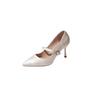 New Chinese Style Light Mouth Stiletto Shoes 2024 Summer New High-end Satin Retro Pointed One-word Belt Women's Shoes