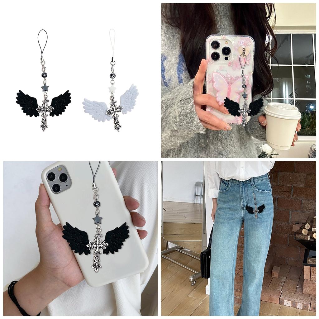 Vintage Gothic Cross Angel Wings Keychain Unique Keyring Bag Pendant Multifunctional Charm for Keys and Phones